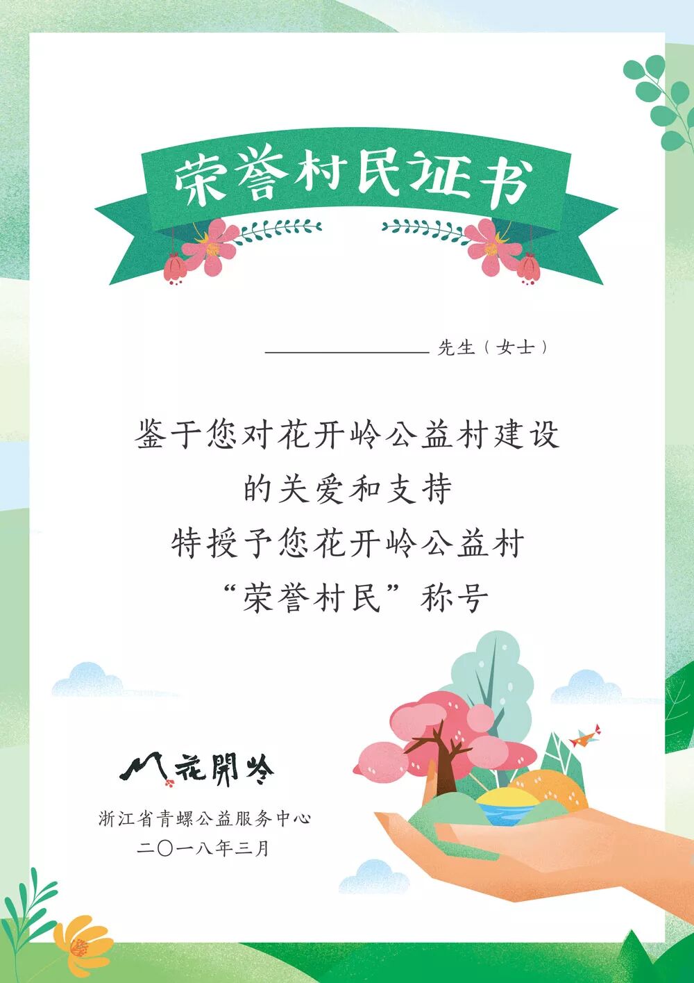 四、获得一份签名的花开岭“荣誉村民”确证文件,“花开岭上立,披云笑一声”。