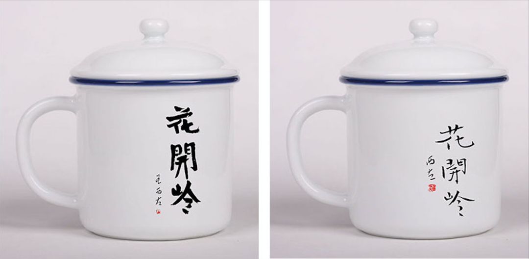 最后一个重磅福利是:你将获得一个花开岭的限量版手工烧制瓷杯,作为一个非凡纪念。著名书法家王西左老师手书,分男女两款,你可以选择自己中意的一款,景德镇定制。